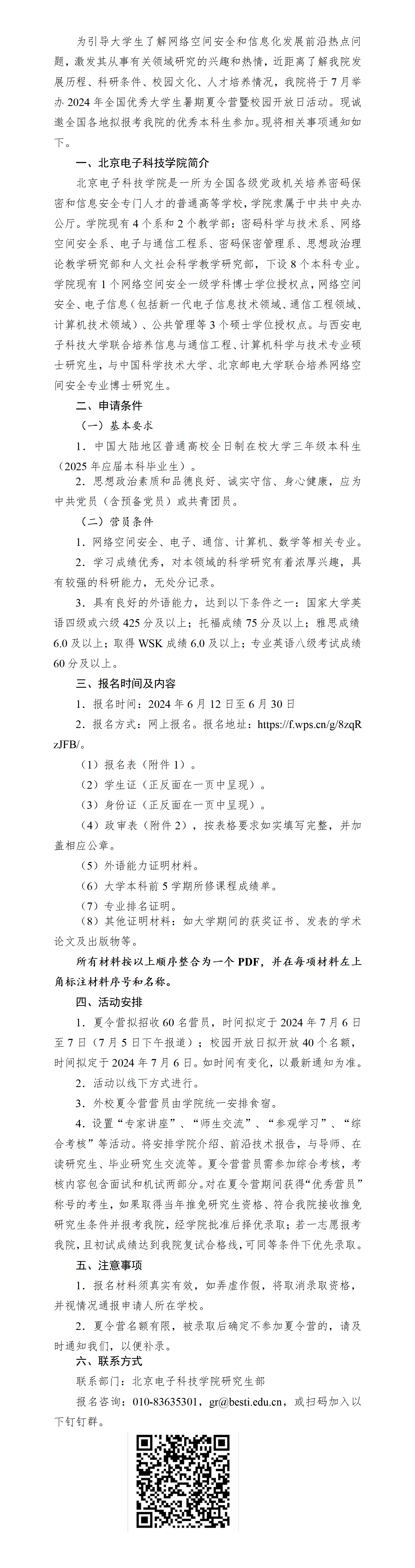beat365正版唯一官方网站关于举办2024年全国优秀大学生暑期夏令营暨校园开放日活动的通知