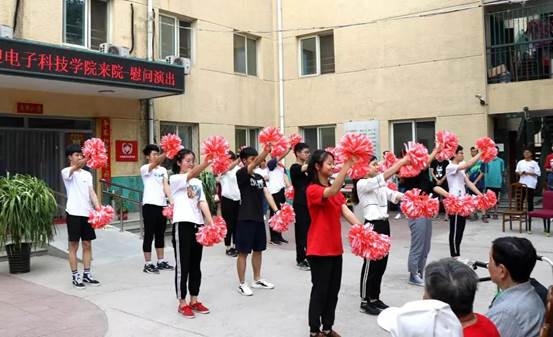 2019年5月17日,我们走过了春的旎旖,迎来了夏的蓬勃。在这夏日里电通系的领导老师和同学们走进丰台爱心敬老院,同学们用才艺,将缤纷且绚丽、灿烂且热烈的青春播撒进敬老院中。在和老人们的欢歌笑语中度过了夏日里又一个欢乐的下午。