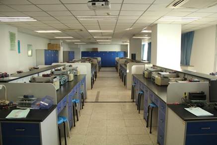 模拟电子技术实验室占地约150平方米,开设有电路分析、模拟电子技术、电磁防护技术、电子电路课程设计等课程实验,拥有各类实验仪器设备200多台套。