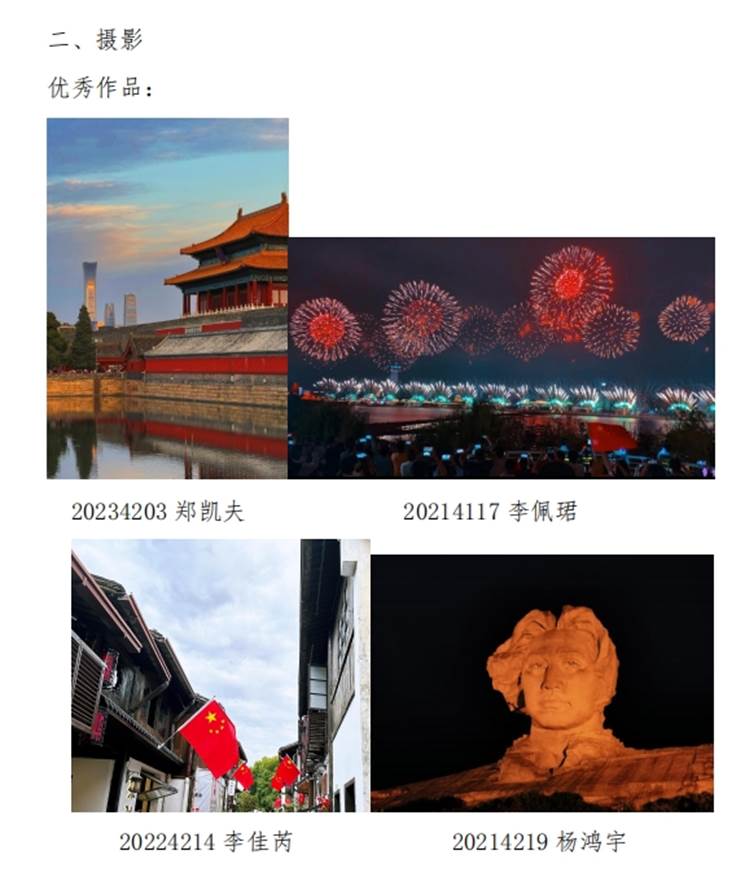 在摄影作品中,同学们用相机捕捉感动瞬间,以镜头语言诉说对祖国的炽热情怀。