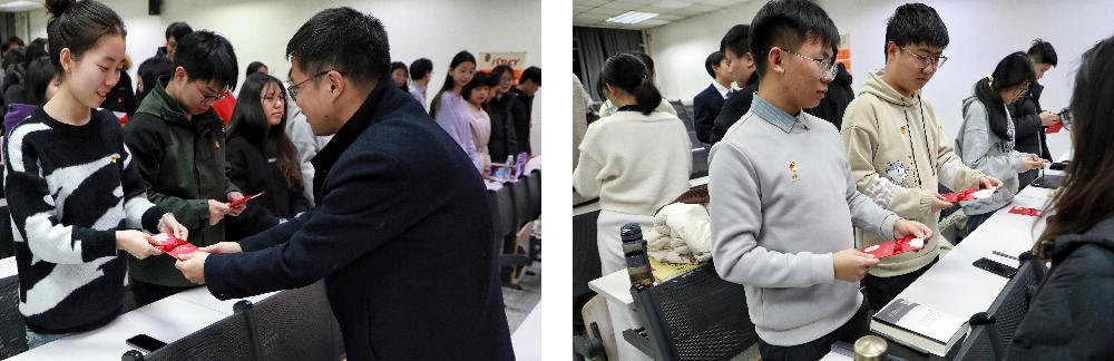 宣誓结束后,周韩老师对新一批转正党员和预备党员表示衷心祝贺,并向全体学生党员提出两点希望和要求:一是要始终强化党员意识,将党性修养融入学习、工作与生活的方方面面。二是要永葆先进性,常怀敬畏心,充分发挥党员先锋模范作用。