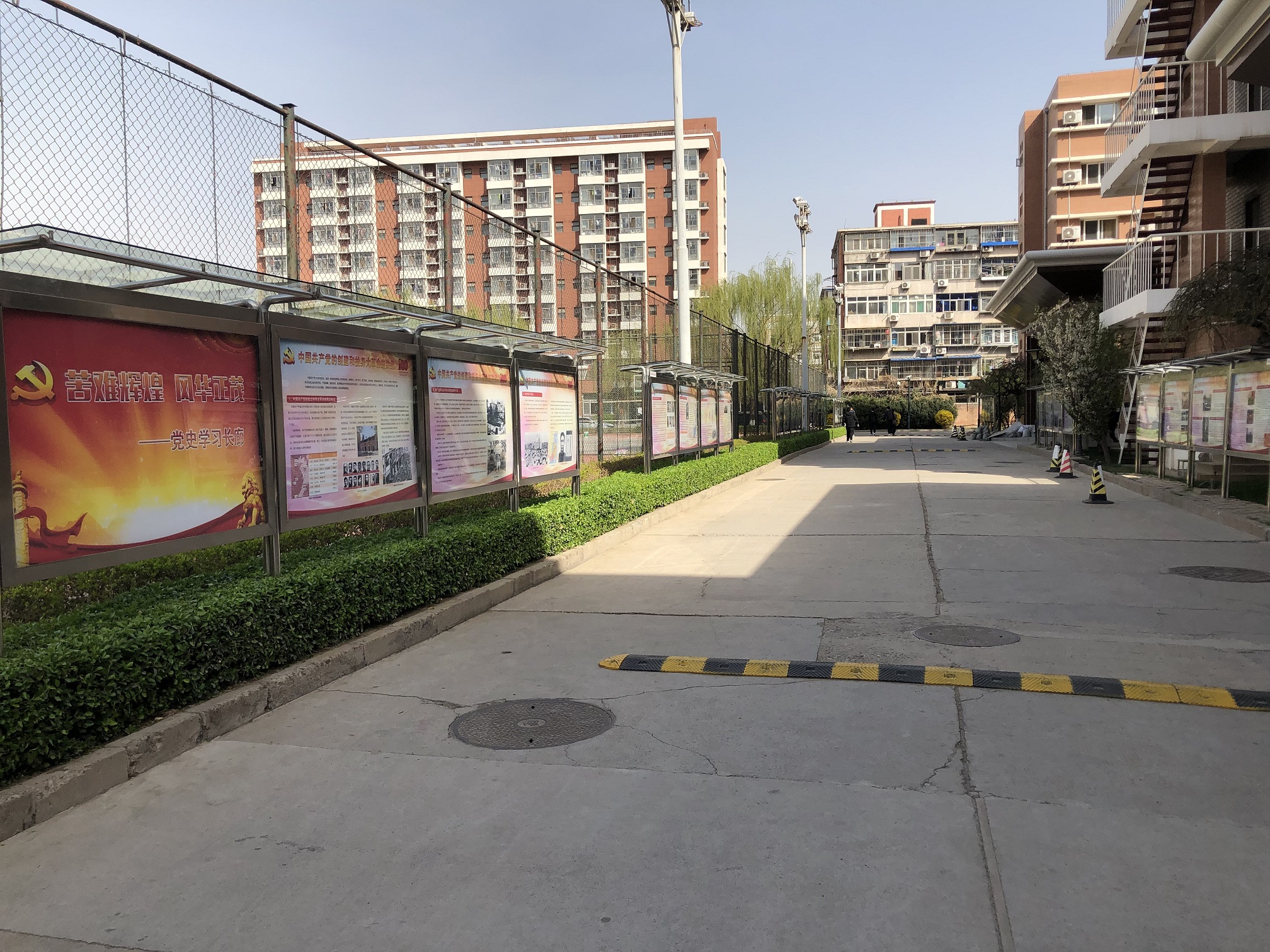 3月下旬,电科院利用校园主干道两侧宣传橱窗,设计布展 “苦难辉煌 风华正茂”党史学习长廊。