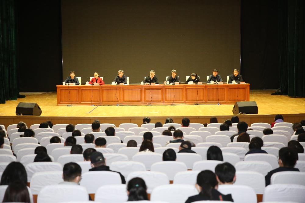 2023年4月6日下午,学院在文化艺术中心召开新一轮本科教育教学审核评估工作动员会,对迎评工作进行动员和安排部署。学院领导班子和全体教职工参加会议,会议由党委副书记、院长毛明同志主持。