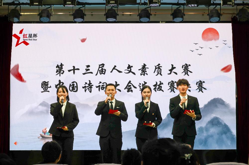 11月29日下午,由人文社科部、院团委、管理系联合举办的我院第十三届人文素质大赛暨中国诗词大会选拔赛决赛在学术报告厅顺利举行。副院长乔晓丽老师、相关职能部门负责老师、各系部党总支书记以及师生代表共计约200余人到场观赛。赛场上,各系部代表队及学院自荐队以诗会友,共探经史,充分展现了电科院学子无比坚定的文化自信和昂扬向上的弘扬中华优秀诗词文化的时代活力。经过三个环节的激烈角逐,管理系代表队最终获得团体一等奖,研究生代表队、学院自荐队获团体二等奖,密码系、网空系、电通系代表队获团体三等奖。另外,大赛组委会还评选出了优秀古诗词创作奖、优秀视频奖、最佳才艺奖等多项个人奖项。