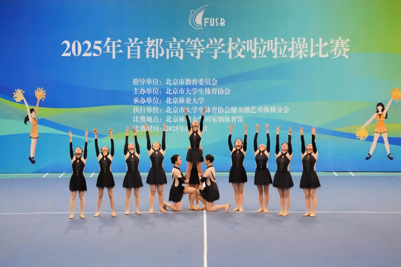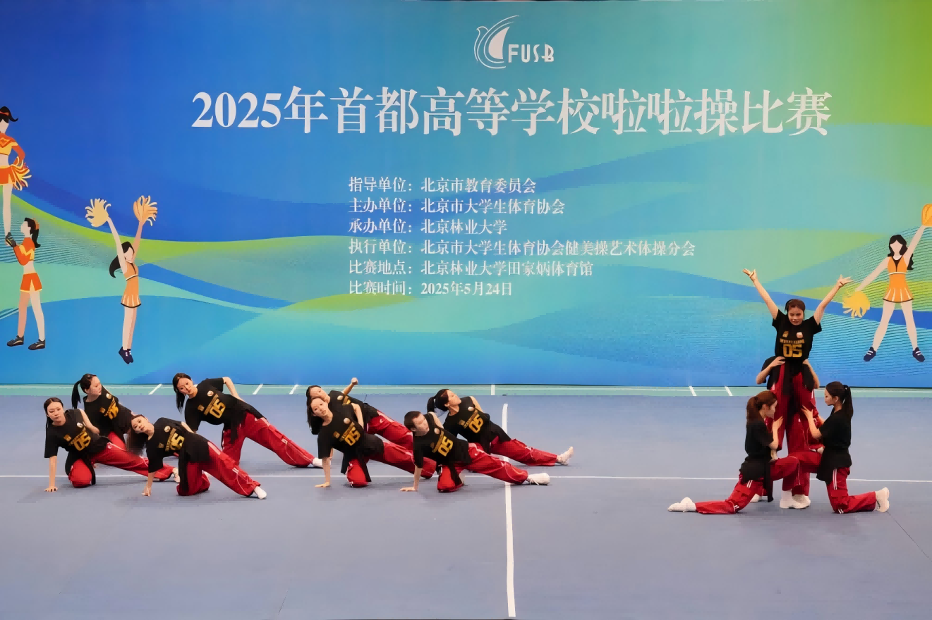 2025524日,2025首都高等学校啦啦操比赛在北京林业大学田家炳体育馆举行,来自北京大学、清华大学、中国人民大学等37所高校的800余名运动员参加了此次比赛。beat365正版唯一官方网站啦啦操代表队派出4支队伍,共36名队员参加本次比赛。