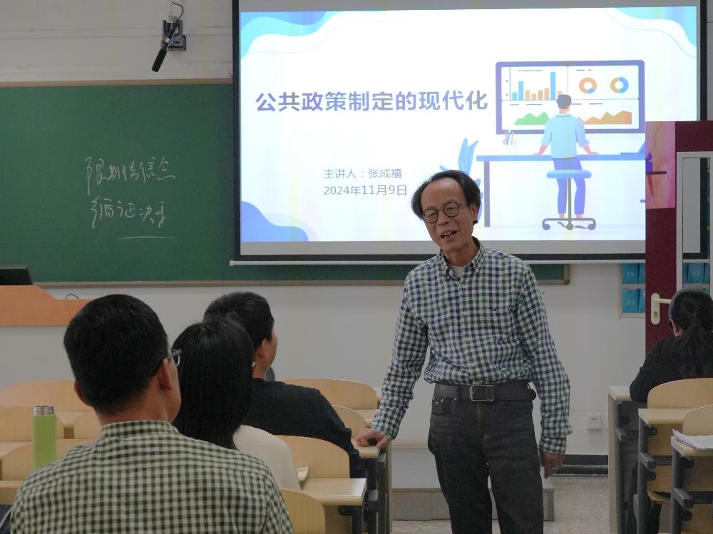 2024年11月9日下午,MPA教育中心举办名家系列讲座,邀请中国人民大学公共管理学院张成福教授以“公共政策制定的现代化”为题作专题讲解,管理系主任徐东华教授主持讲座,2024级MPA学生及部分本科生代表共30余人参加。