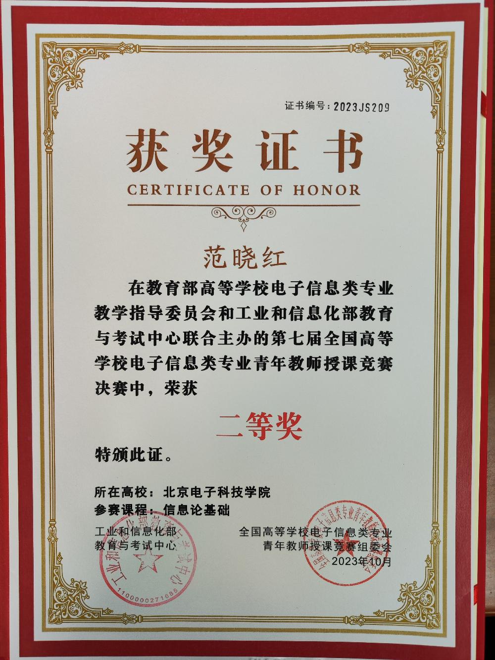 电科院教师荣获第七届全国高校电子信息类专业青年教师授课竞赛二等奖