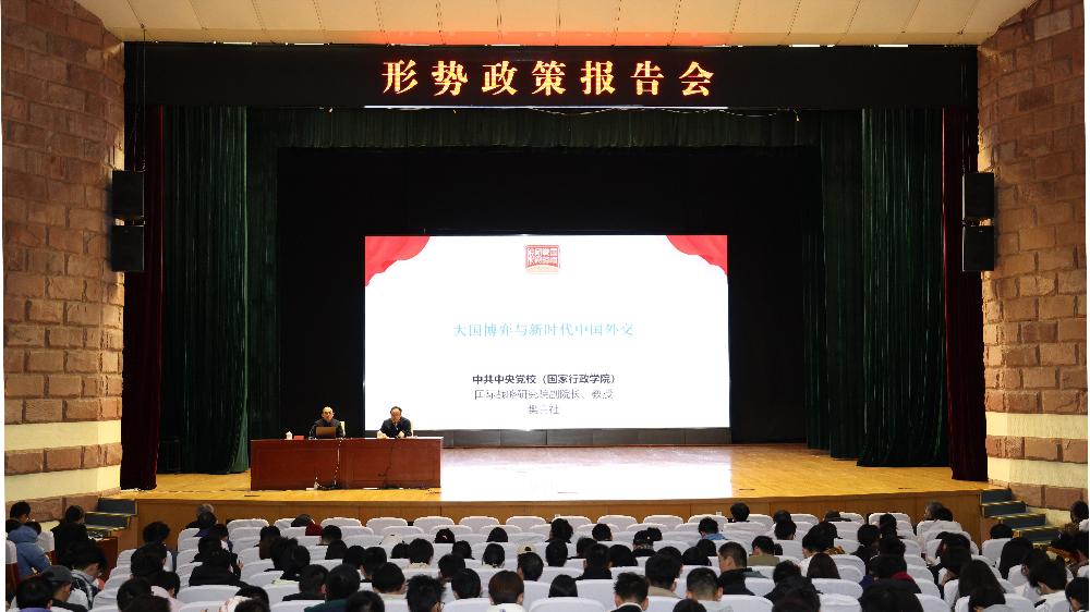 11月10日下午,电科院在文化艺术中心举办本学期第二场形势政策报告会,邀请中央党校(国家行政学院)国际战略研究院副院长、教授、博士生导师樊吉社教授作“大国博弈与新时代中国外交”专题辅导报告。学院2000余名师生聆听了报告。