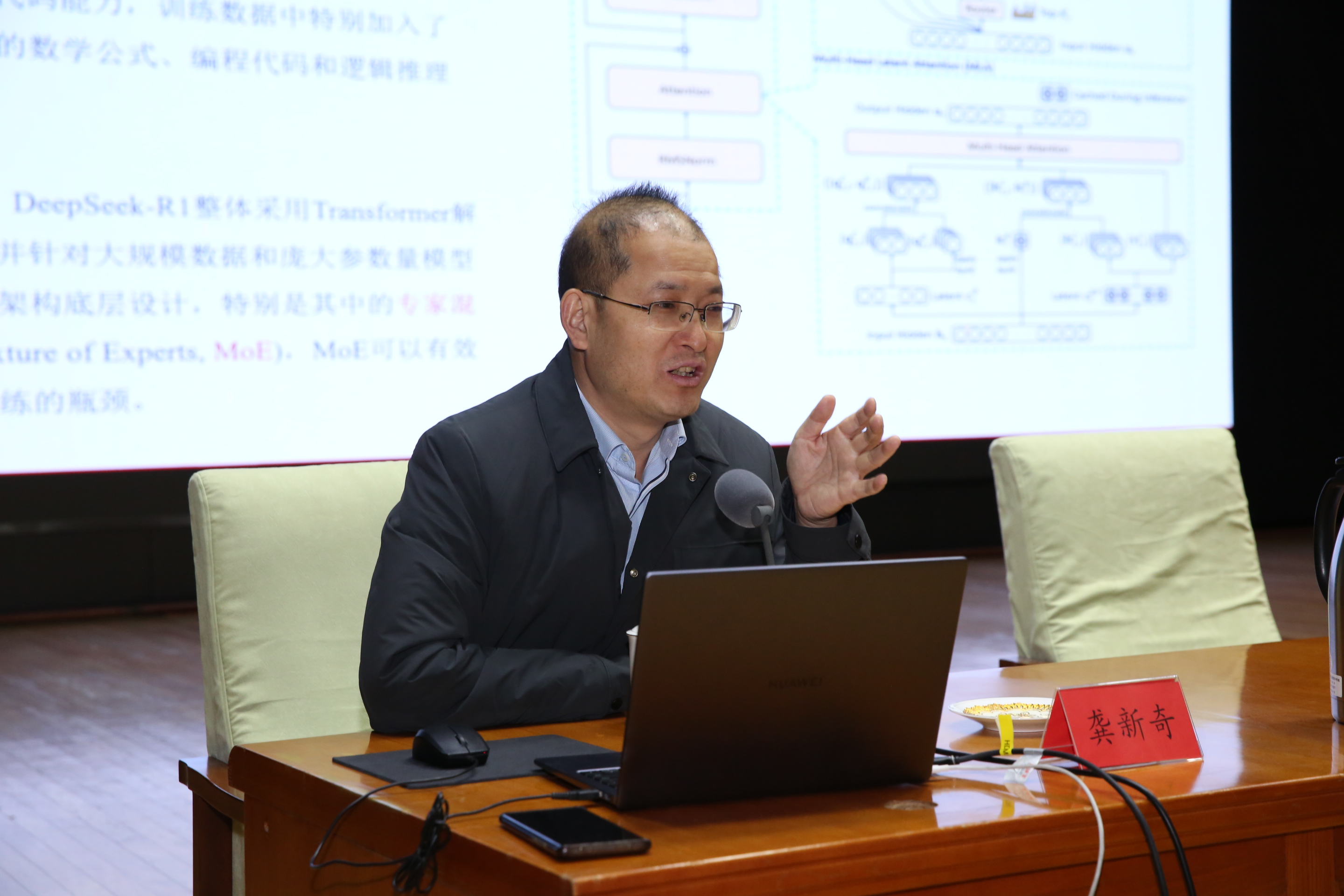 3月28日下午,电科院邀请中国人民大学国家治理大数据和人工智能创新平台主任龚新奇教授来院作形势政策报告。院领导、副处长以上领导干部、师生代表2000余人聆听报告。龚新奇教授介绍了DeepSeek发展历程与原理、模型介绍与部署需求、中国人民大学部署与应用情况、其他场景应用与启示等方面内容,追溯了DeepSeek模型从理论突破到实践落地的演进轨迹,通过对比分析特色案例,从系统化视角揭示了智能技术赋能社会治理的内在逻辑与发展规律。此次报告精准把握技术迭代与制度创新的辩证关系,为师生理解国家教育数字化战略部署、利用人工智能促进大学发展提供了方法论支撑。