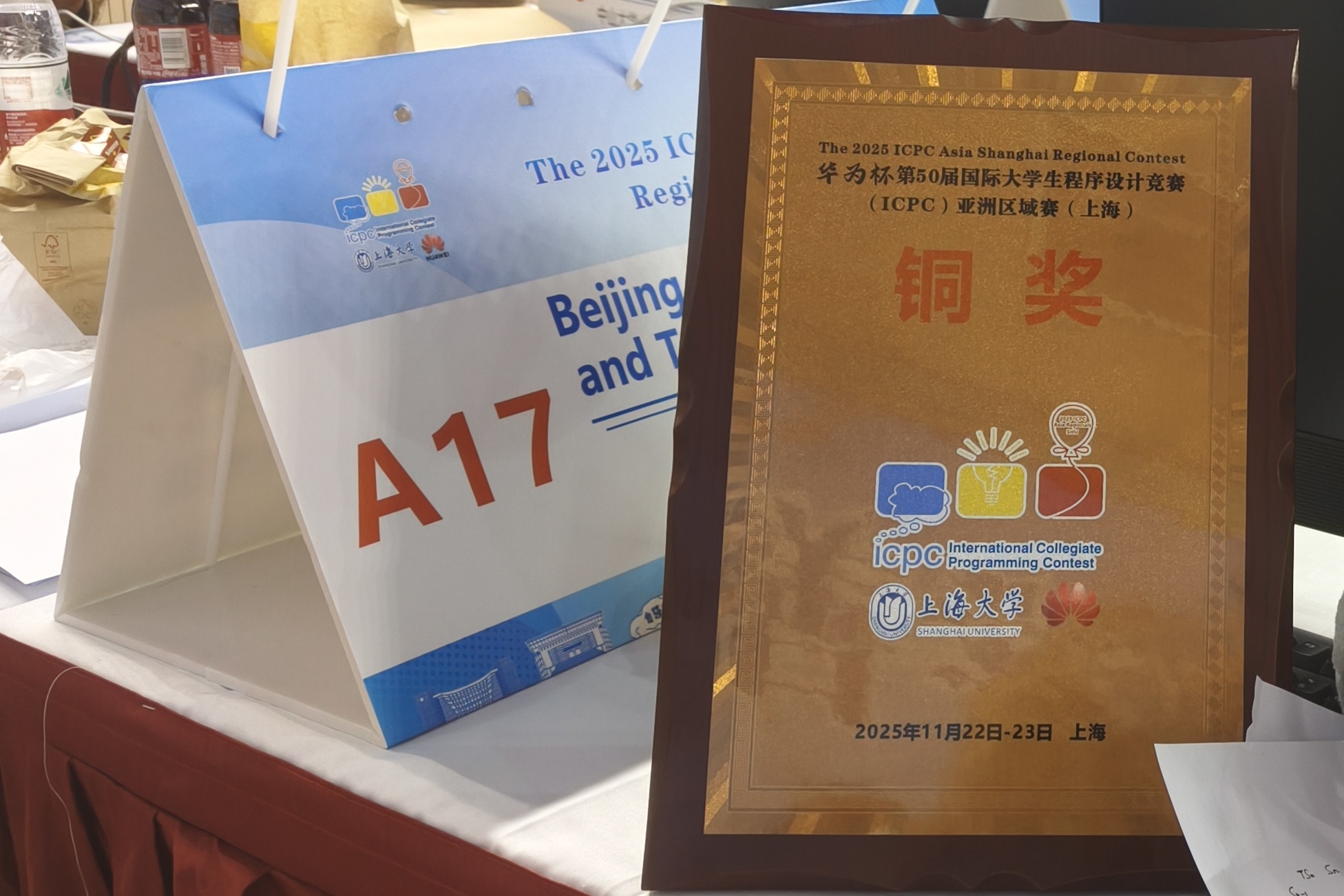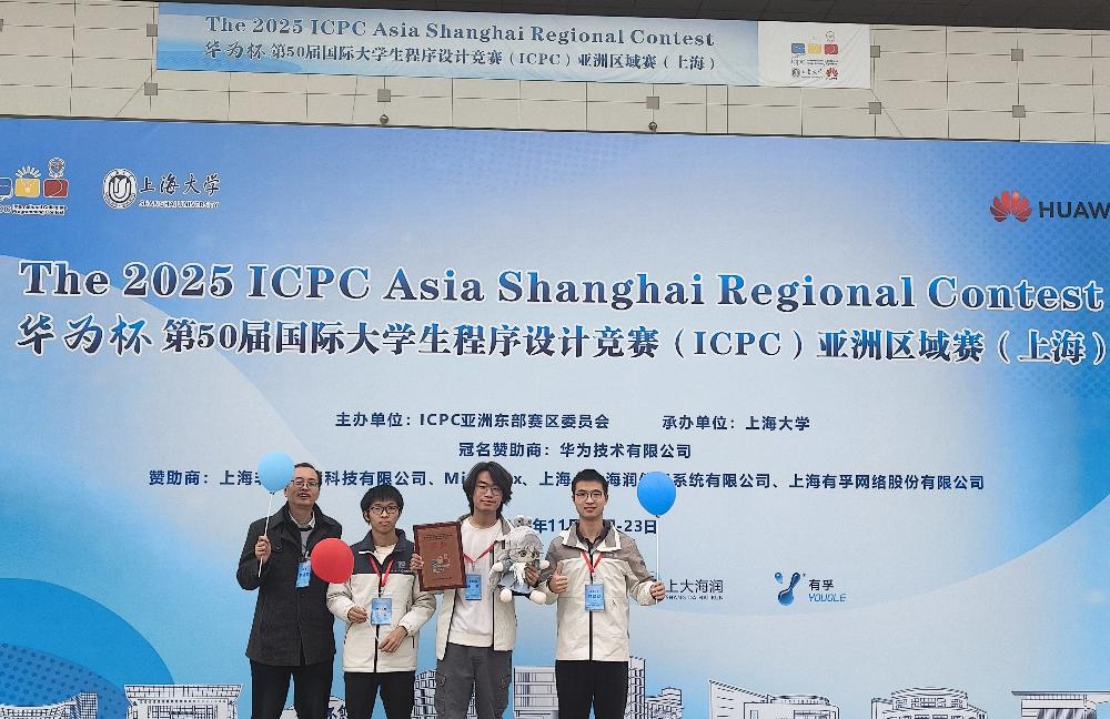 1122日至23华为杯50届国际大学生程序设计竞赛(ICPC)亚洲区域赛(上海站)上海大学举办,学院参赛队伍指导教师:李晓东,团队成员:于凯、岳金涛、邱贤达以正式队伍排名第121、学校排名第73的成绩,荣获ACM-ICPC亚洲区域赛铜牌取得历史性突破